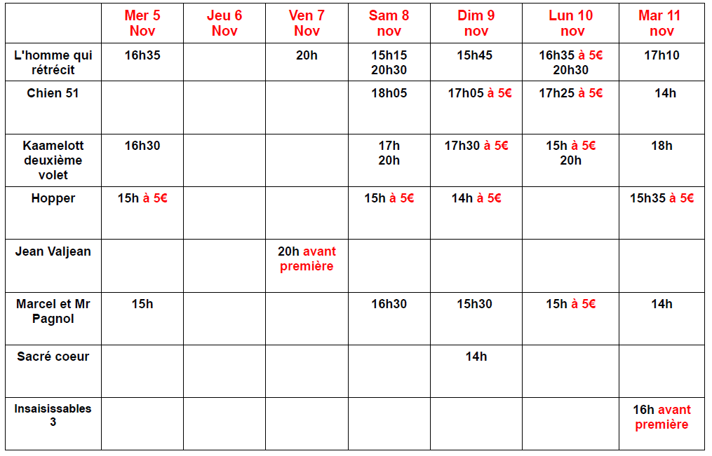 A PARTIR DU MERCREDI 5 NOVEMRE 15H