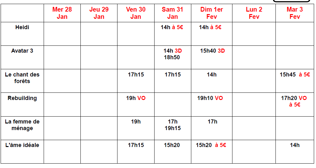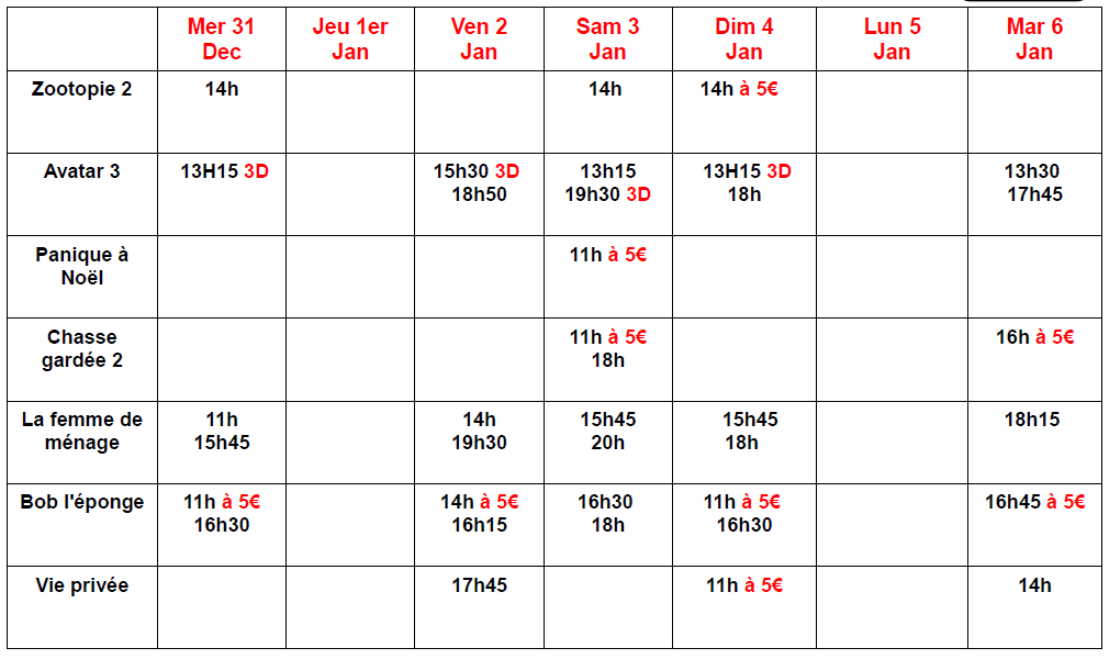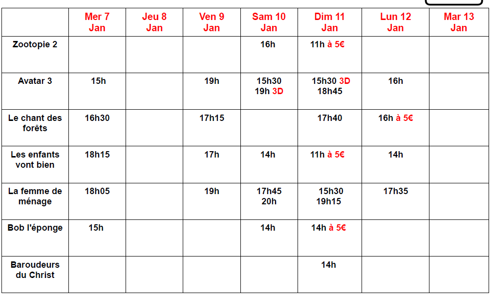 LE CINEMA SERA FERME DU MERCREDI 14 JANVIER AU MERCREDI 28 JANVIER