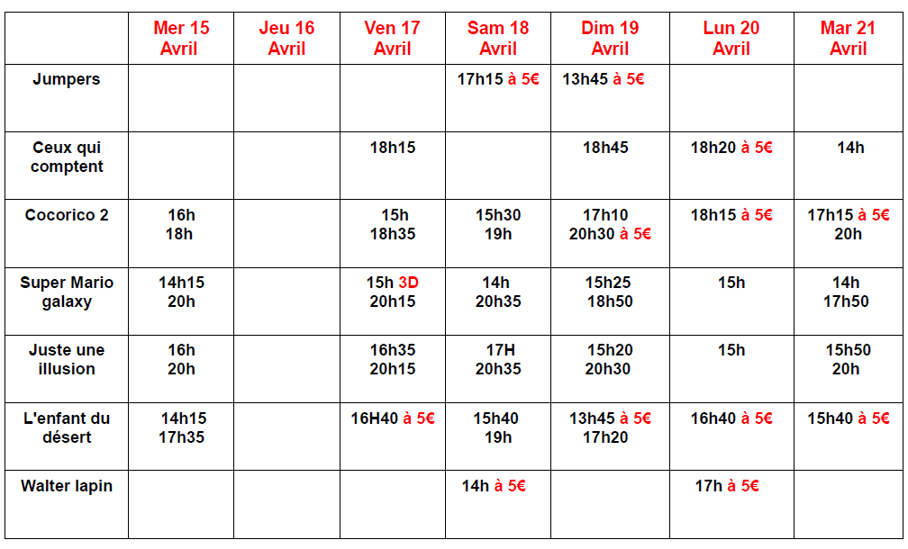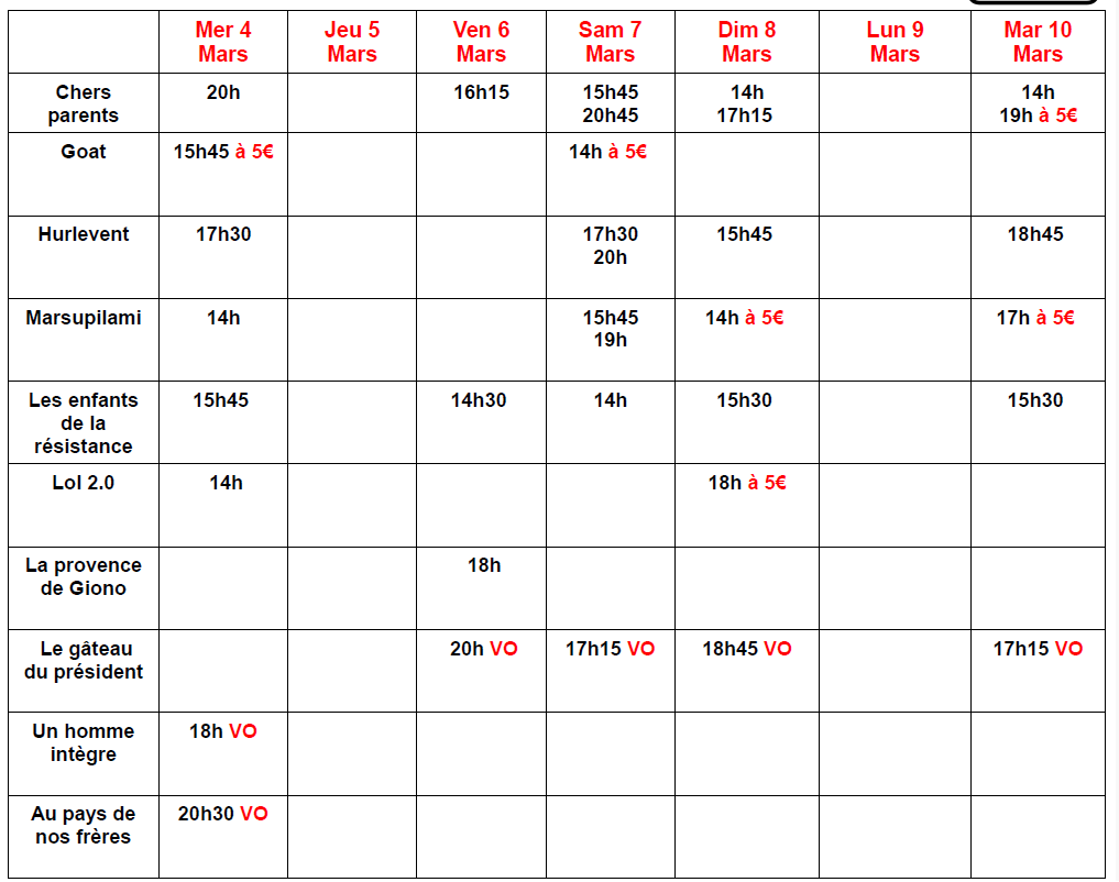 A PARTIR DU MERCREDI 4 MARS 17H30
